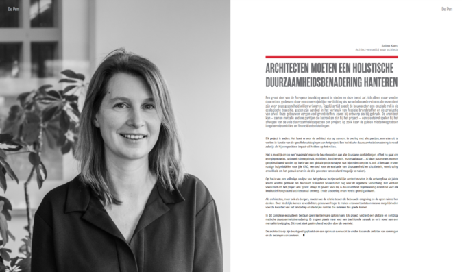 Une grande partie de la population européenne vit dans les villes et cette tendance ne fera que s’accentuer, poussée par une inéluctable densification si l’on veut préserver des espaces non bâtis indispensables à notre santé. Parallèlement, le secteur de la construction a un rôle crucial à jouer dans la transition écologique au vu de son poids dans la consommation d’énergies fossiles et dans la production de déchets. Nos bâtiments sont gourmands en ressources à la fois pour leur conception et lors de leur utilisation. L’architecte peut jouer un rôle clé (avec l’ensemble des acteurs du projet) pour doser, projet par projet, les nombreux aspects de la durabilité, entre ambitions à long terme et objectifs financiers.