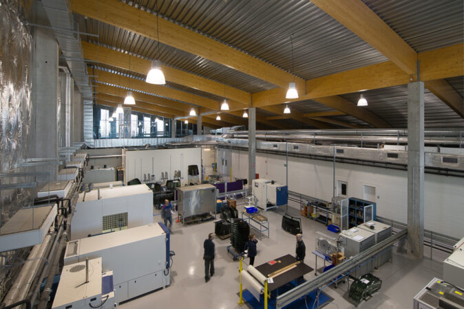 This industrial research building is designed with optimal horizontal flow for people, equipment’s, material, or research samples, with a pertinent use of the natural topographic constraints of the site. Its footprint on site, takes also into account all the potential future AGC extensions for the next decades or research and development.
