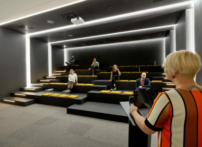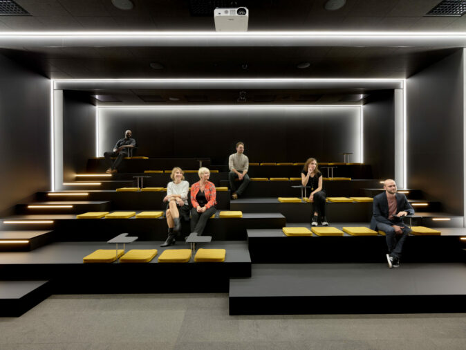 Sub-area 2 has several meeting rooms and a working theatre. The movable furniture in the meeting rooms enables a variety of meeting possibilities: from classic tables with chairs to high tables with ergonomic chairs and seat balls.