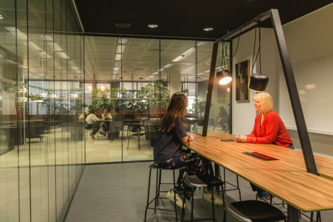 Sub-area 2 is located between sub-areas 1 and 3 and consists of meeting rooms, “train compartments”, team corners, etc… adapted to the needs of each specific department.