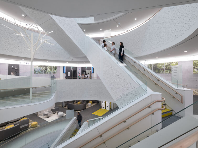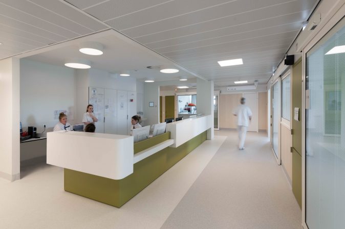 Everything has been designed to optimise the functionality of the building, to ensure the user-friendliness of the spaces in order to provide maximum comfort for patients, as well as optimum working conditions for doctors The programme involved bringing together all the acute and inpatient activities of the current sites (Cavell & Léopold) within a single building.