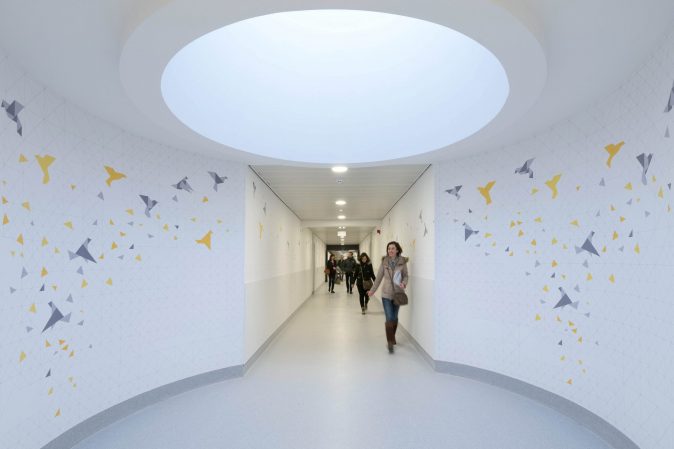 The major organisational challenges of the project concerned the general functionality of the building, the user-friendliness of the spaces, improvement of the reception, and comfort of the patients and the working conditions of the doctors and staff, flexibility and scalability, the implementation of appropriate technologies, etc. Architecturally, this programme translates into care units of standardised size, mostly individual rooms, a modular technical platform – enabling spaces and circuits to be optimised, restrained and comfortable reception and waiting areas, efficient information and communication systems, and – a fundamental element – great simplicity and legibility of access and flows (patients, visitors, carers, etc.).