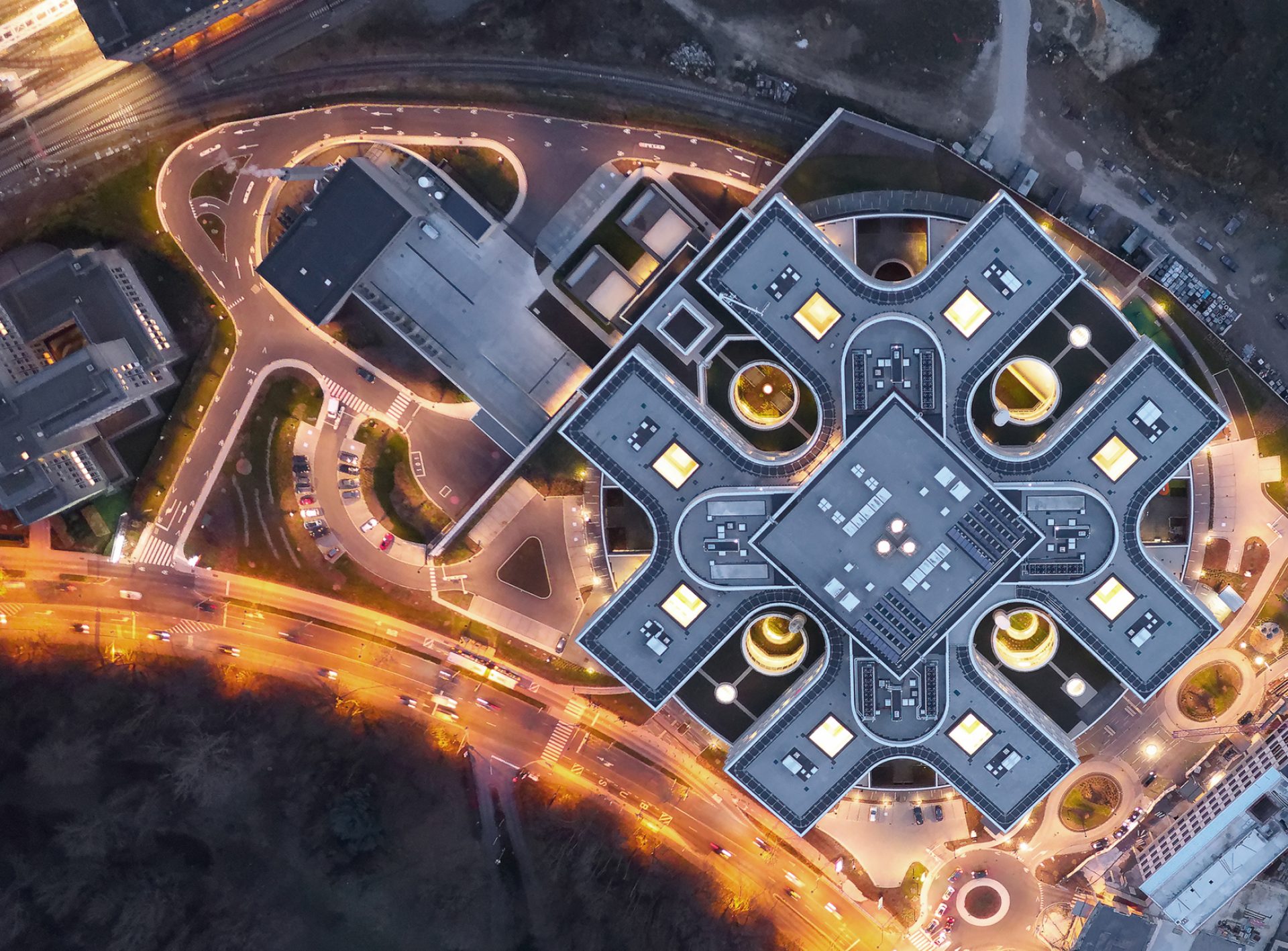 With a surface area of 104.000 m², the hospital has 7 levels, 2 of which are located in the basement, making the best use of the sloping terrain.
