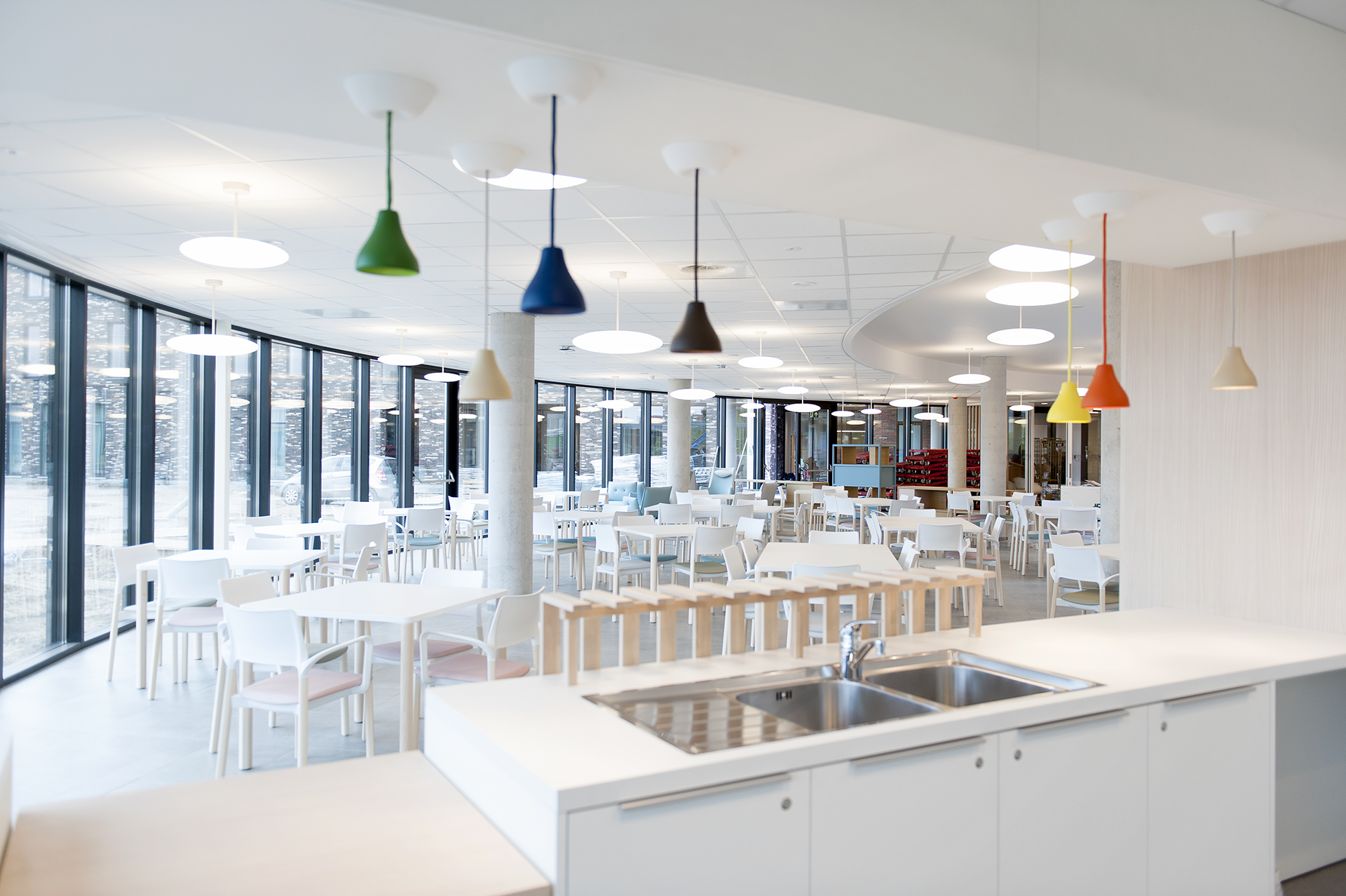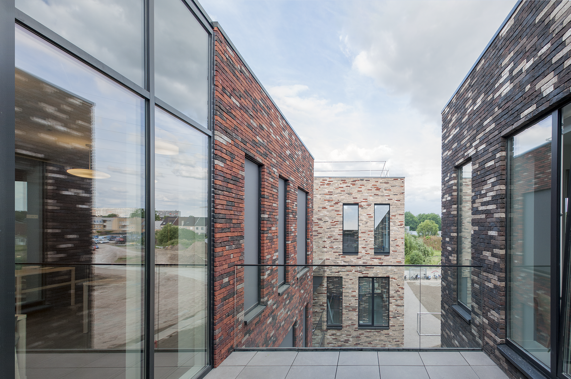 With its compact design, the surface area of the façade – and therefore the energy loss – is minimal. This is further enhanced by the use of thick insulation packages and triple glazing. The risk of overheating is reduced by the automatic external sun protection. The building is also equipped with solar collectors for hot water and energy-saving LED lighting.