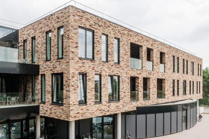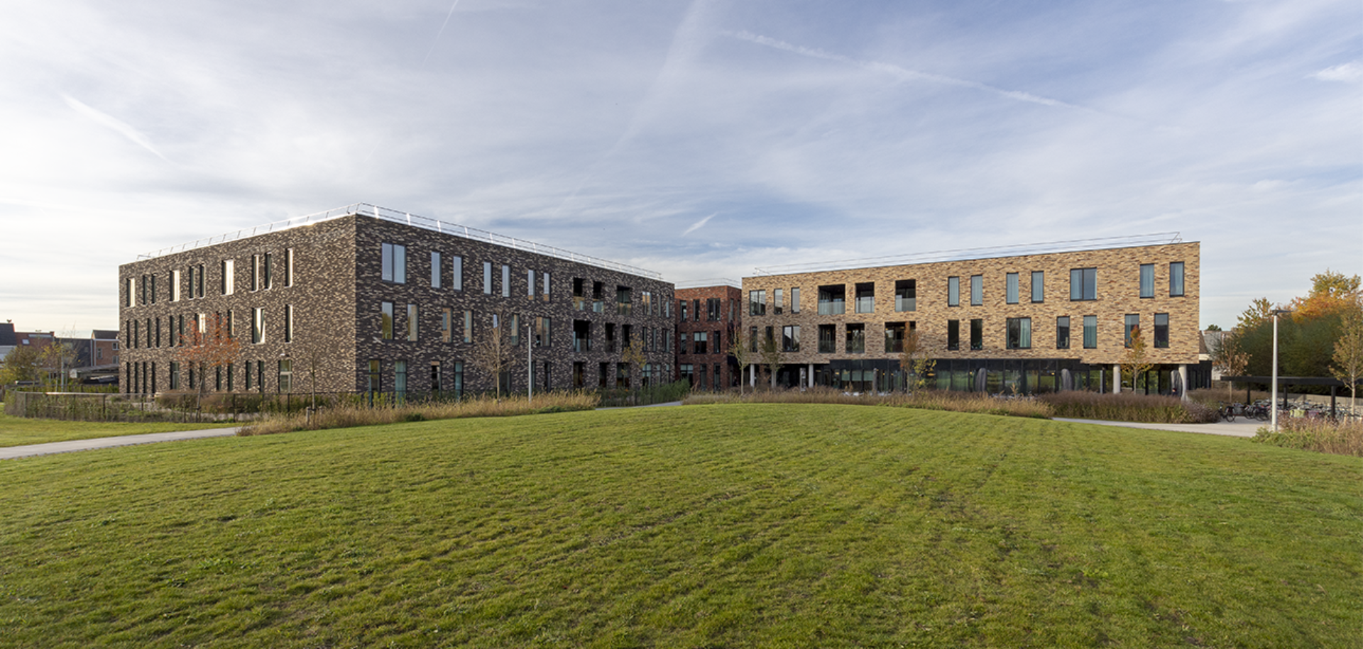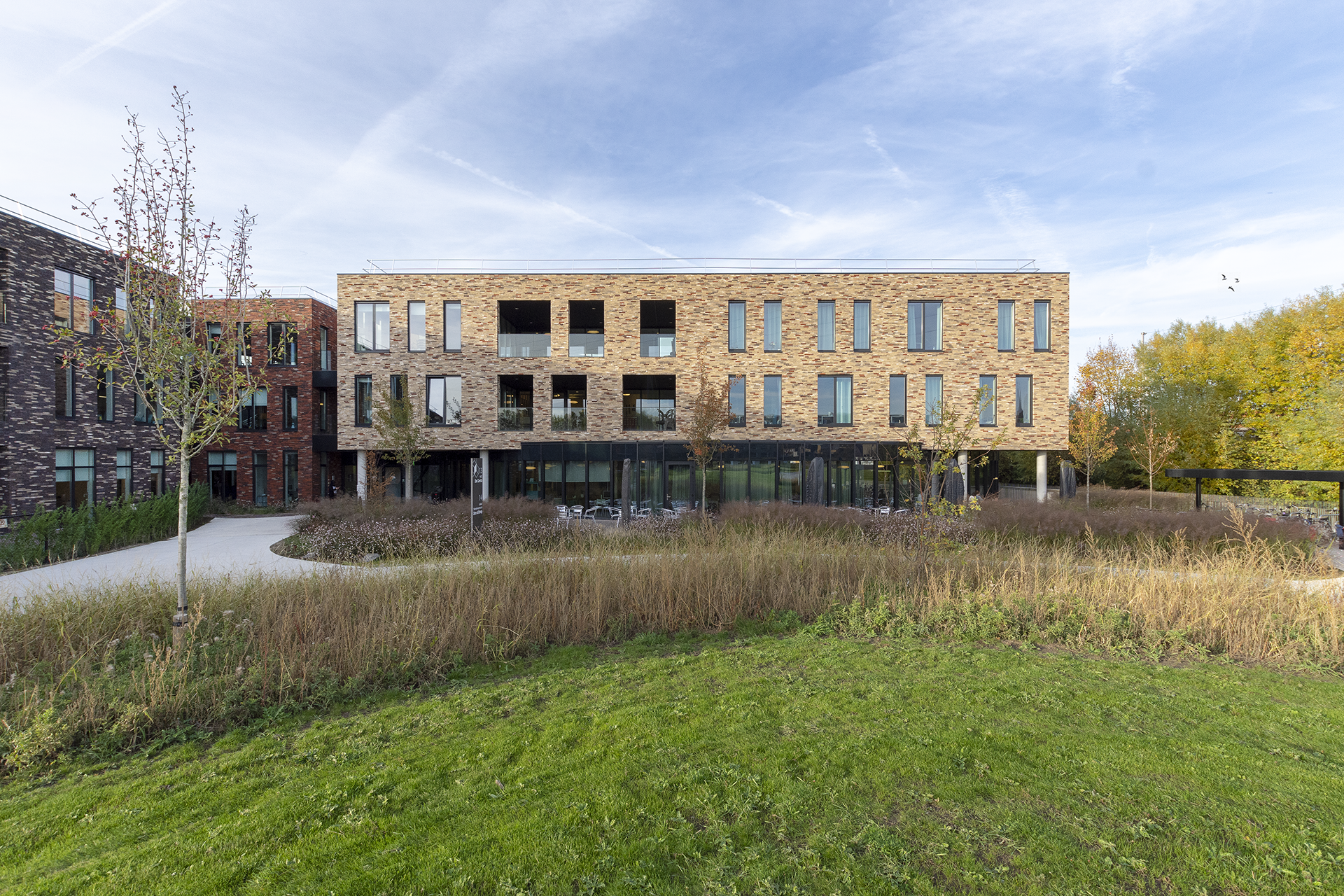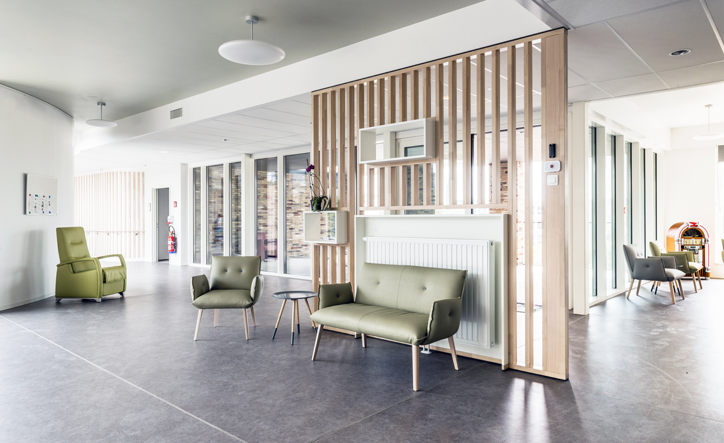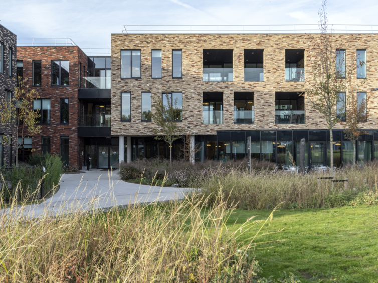 A fruitful collaboration was developed with the designers of the surroundings, the Stramien design office. Both designers strongly advocated their role in the overall master plan for the Gerda site. This dialogue resulted in a coherent whole, with a good balance between the needs of a contemporary residential care facility, and the very successful construction of a public domain in the surroundings.