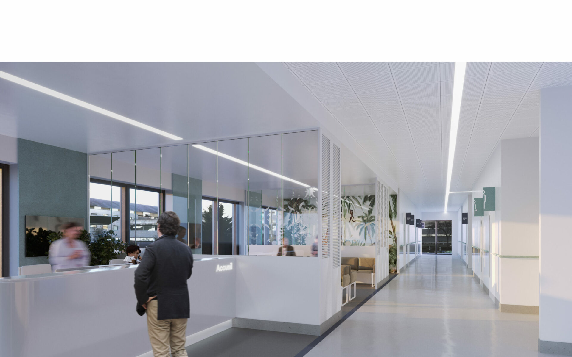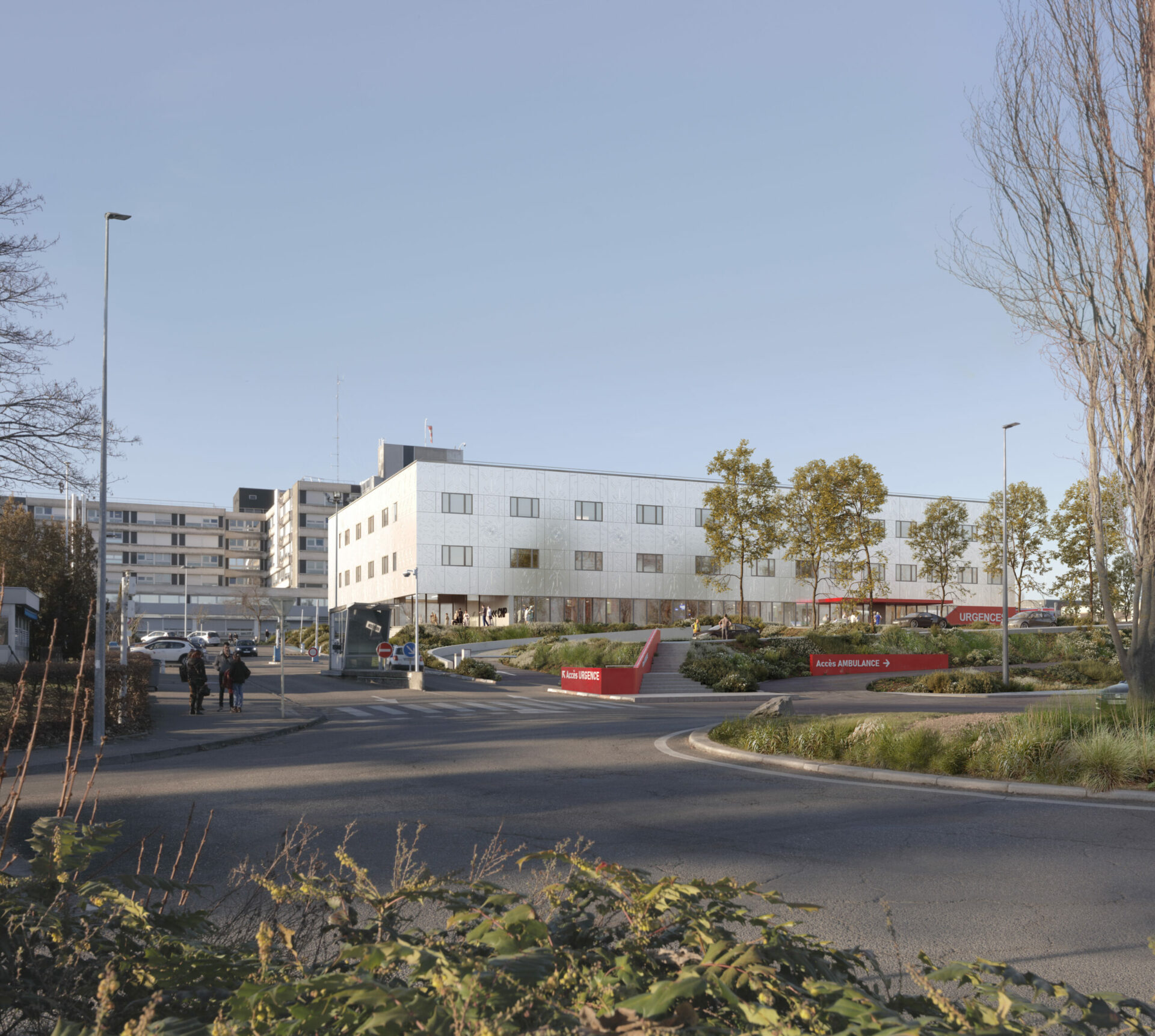 This project is primarily an extension of the hospital, bringing together emergency services, intensive care, and resuscitation units. It is accompanied by the rehabilitation and restructuring of the UHCD service in the existing facility.