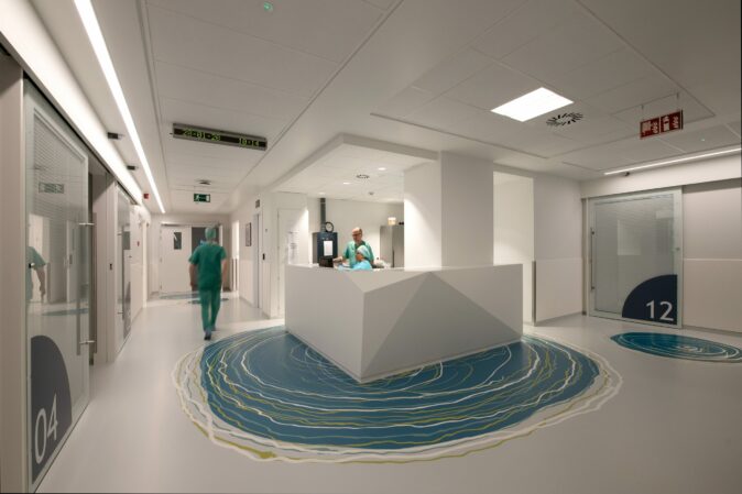 | program | construction of a new medical-technical building, as an extension to the hospital, grouping together the operating department, the surgical day hospital, the intensive care unit, the sterilisation function & an underground car park, a floor level on which only the shell is completed, a technical floor level & logistics premises |
