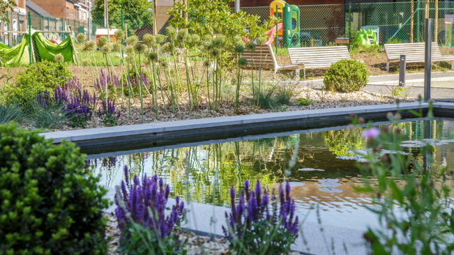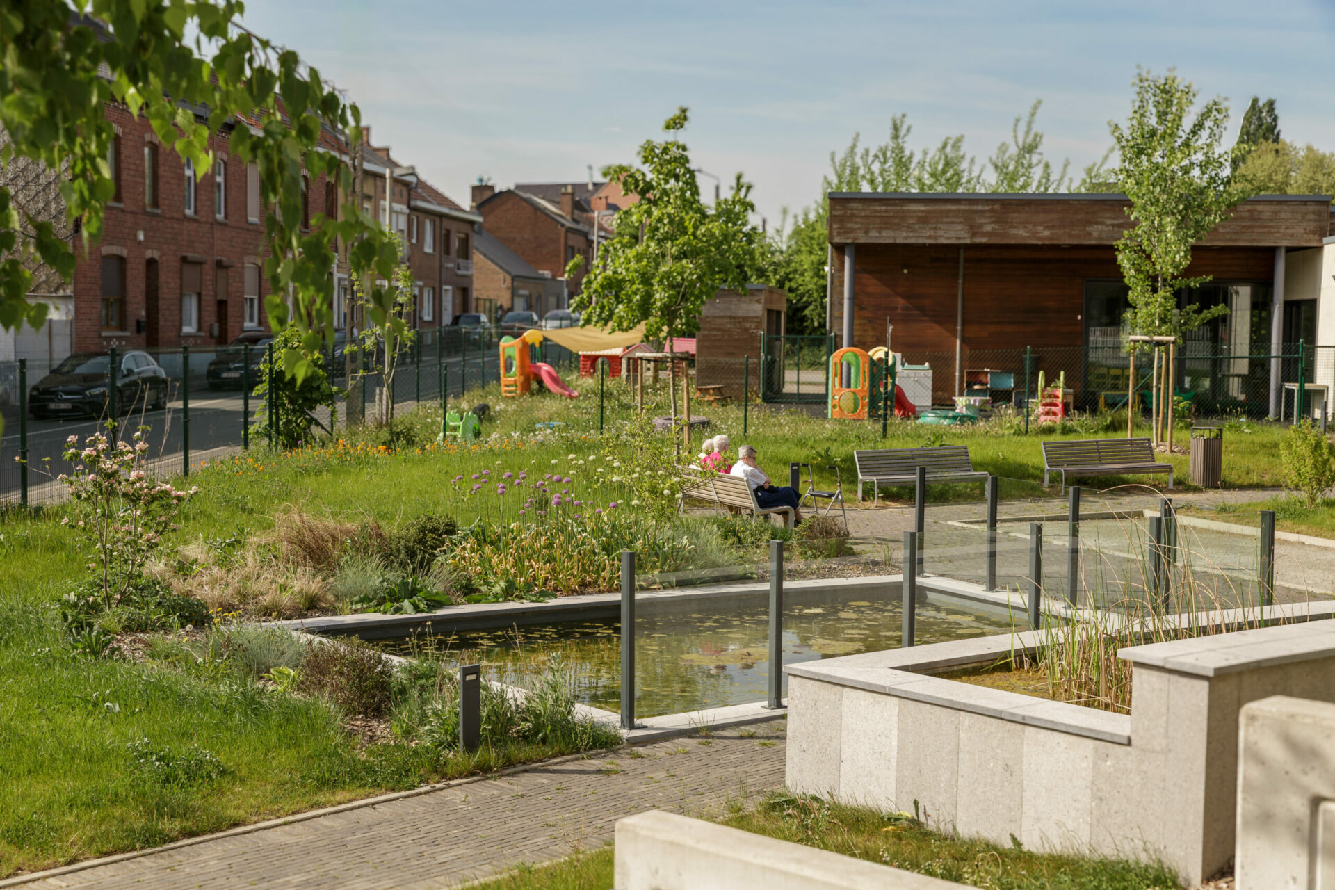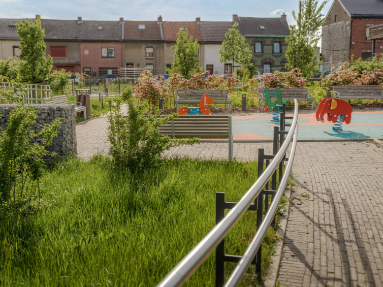 The selection of woody plants, hedges, and shrubs will follow the Walloon Government decree (M.B. 19/02/2008), complemented by the planting of grasses and perennials chosen to stimulate the senses. While the trees are not specifically native, they have been selected for their varied forms and their evolving colors throughout the seasons.