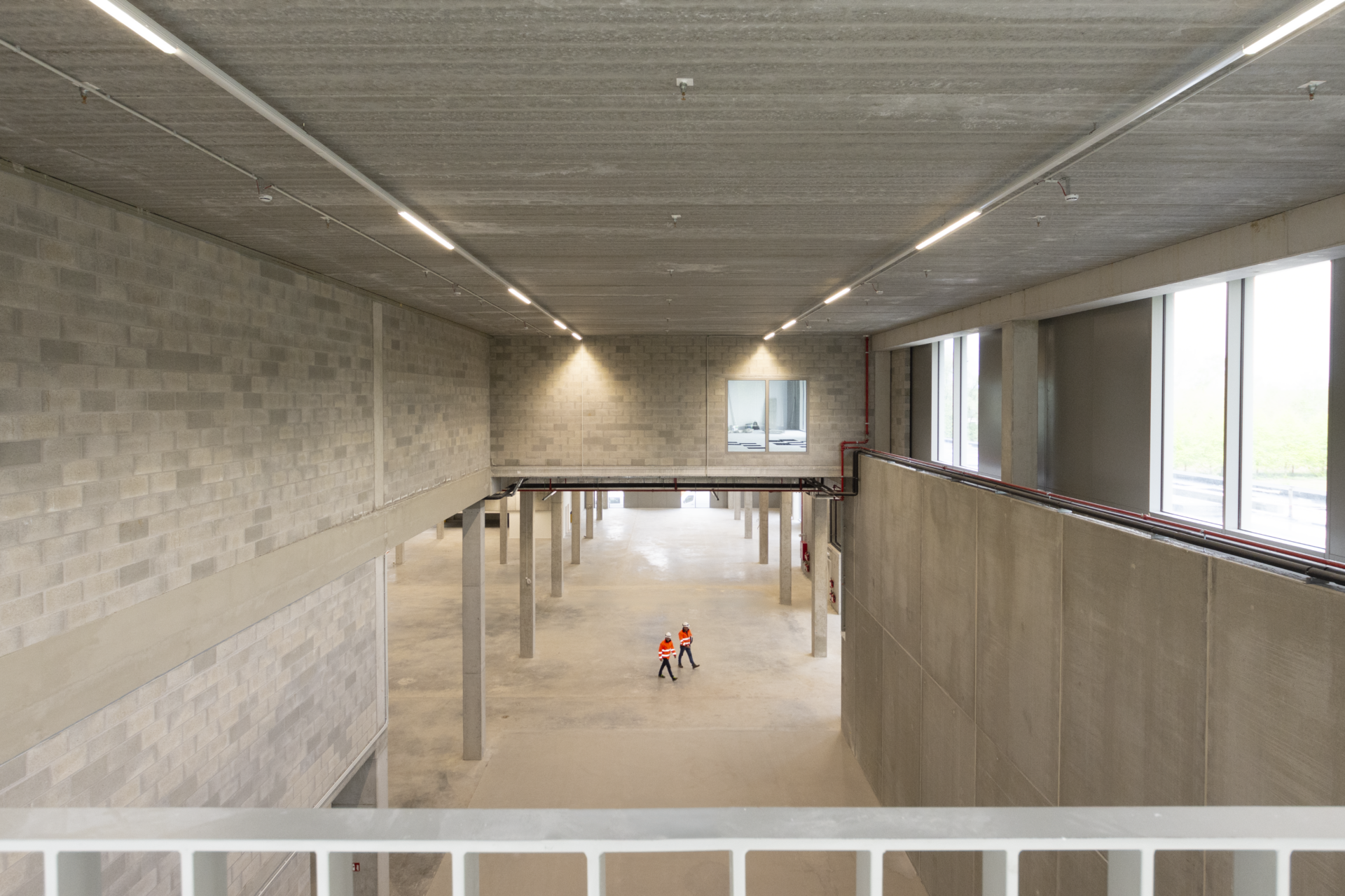 Nova One is a medium-height building, reaching 26 meters, with five above-ground floors and three basement levels. The first level, with a clear height of 8.10 meters, houses part of the industrial area as well as a mezzanine equipped with sanitary facilities. Above this structure, the office space spans four floors, primarily designed as open workspaces.