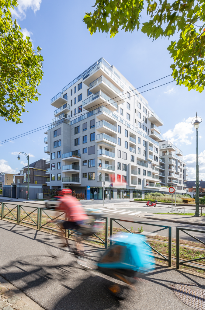 Developed by Besix RED and designed by assar, the residential project at 191 Boulevard du Souverain has significant mobility advantages with the immediate proximity of the metro (Herrmann Debroux), tram line 94 and bus line 34. The project is also directly connected to the cycle paths of the Boulevard du Souverain and the green walking route.
