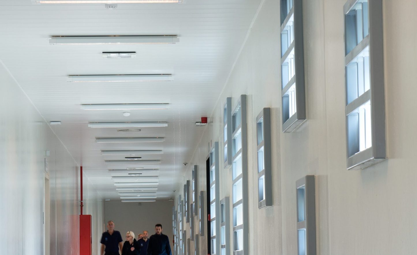 The prison complex is designed on the basis of short, open traffic flows and distinct units. It has three cell wings leading off from a courtyard, and special attention has been paid to the insulation of the walls and access to natural light.