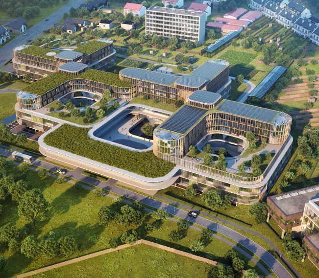 The hospital interacts with its environment and takes account of the capacity of the city and the neighbourhood. This also makes the site a driver of sustainable urban development, seeking a win-win relationship with the neighbourh ood and city as far as possible. This integration with the environment and the community prepares the hospital for the profound transformations in care provision, which is moving towards local and social “care accommodation” close to people.