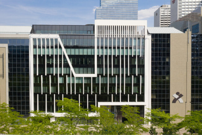 assar proposed a sustainable renovation for this 15.400 m² building (energy, insulation, wood-aluminium curtain wall façade, photovoltaic cells, passive building criteria, etc.), as well as functional (multi-use shared ground-floor, change in distribution, opening up between floors, an opened up character and open to the streets of the ground floor, etc.). Originally, the building, which dates from the 1980s consisted of a curtain wall façade to the north, which was dark and in shadow for most of the day (darkened glazing, black curtain wall). The overall effect was a dull mass in the urban context. assar therefore imagined a real highlighting of the façade by working on the theme of a white cliff. Associated with the northern district, the metaphor of a glacier cliff gives new life to the building, which has become visible from the entrance to the boulevard. Named “Polaris” by the developer Triuva, the latter did not ultimately launch the renovation due to the lack of a candidate occupant.