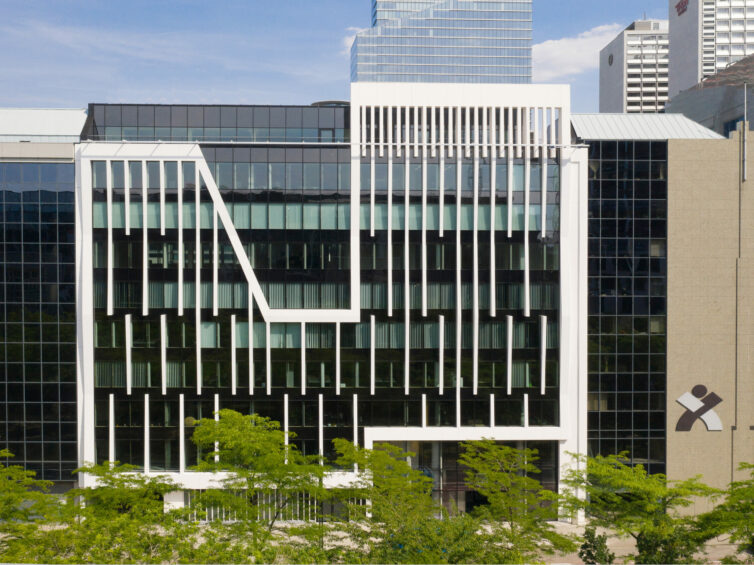 The North Brussels district was the emblem of modern urbanisation in the 1970s, which was imagined as a new “Brussels Manhattan”. The vast monofunctional office complex, with no mixed use, consisted of 750.000 m² of buildings. This “modernist” urbanisation model quickly showed its limitations and it took less than 40 years for it to begin a real decline in attractiveness. Compared to the city centre, which is more lively and better served by public transport, the northern district, which consists of buildings with a high capacity in terms of m², is gradually losing its occupants and is becoming empty, and even unsafe after 6 p.m. Building no. 7 on Boulevard Albert II, which was invisible in the overall perspective, as it lacked any character and was located in a semi-detached building with a uniform curtain wall façade, was paying the price for this lack of interest and gradually losing all its occupants. At the time, the building was part of an imposing and static complex. The building was bought by Triuva, a German investment fund, but no-one was interested in buying it, so the fund commissioned assar to carry out a renovation project to make the building “sexier”.