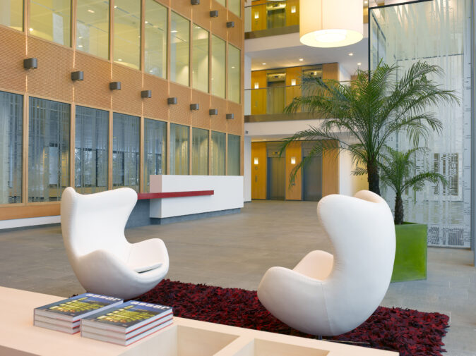 Located within the green belt of Brussels opposite the exceptional natural site of the Forêt de Soignes, Solaris is the first office building to be certified for High Environmental Quality (Valideo) in the Capital of Europe. It sets a new standard in saving natural resources and stressing sensible use of renewable energy: photovoltaic and geothermal.
