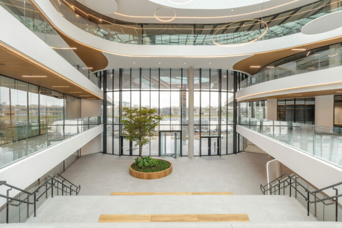 The Wings” our latest project for Ghelamco, stands out not only as an eye-catching addition to Brussels Airport’s international office district but also as a new benchmark in comfort, wellbeing, and sustainability. It marks the first CO2-and energyneutral office environment in Belgium with triple certification: BREEAM Excellent, WELL Gold, and DGNB Gold.