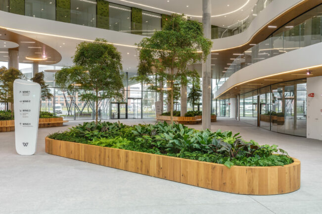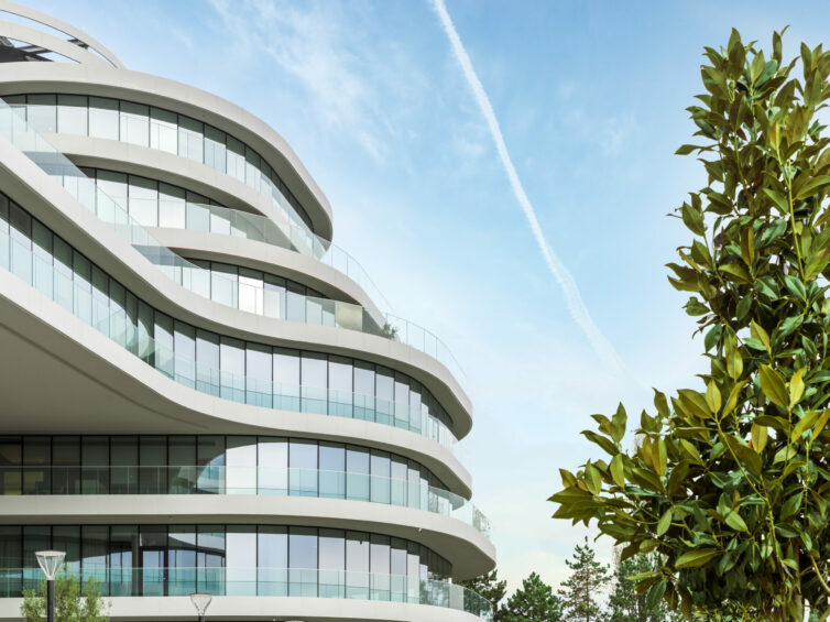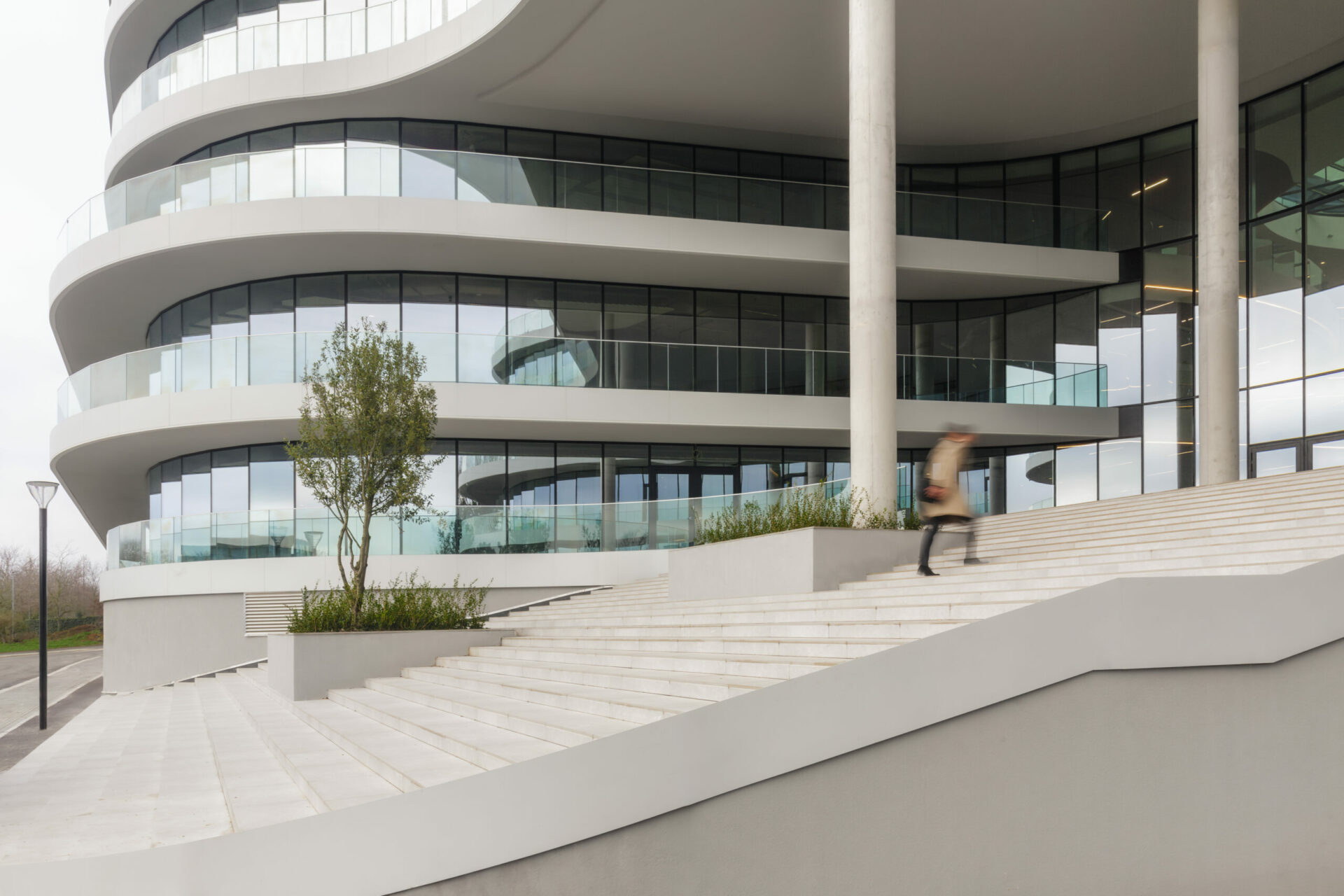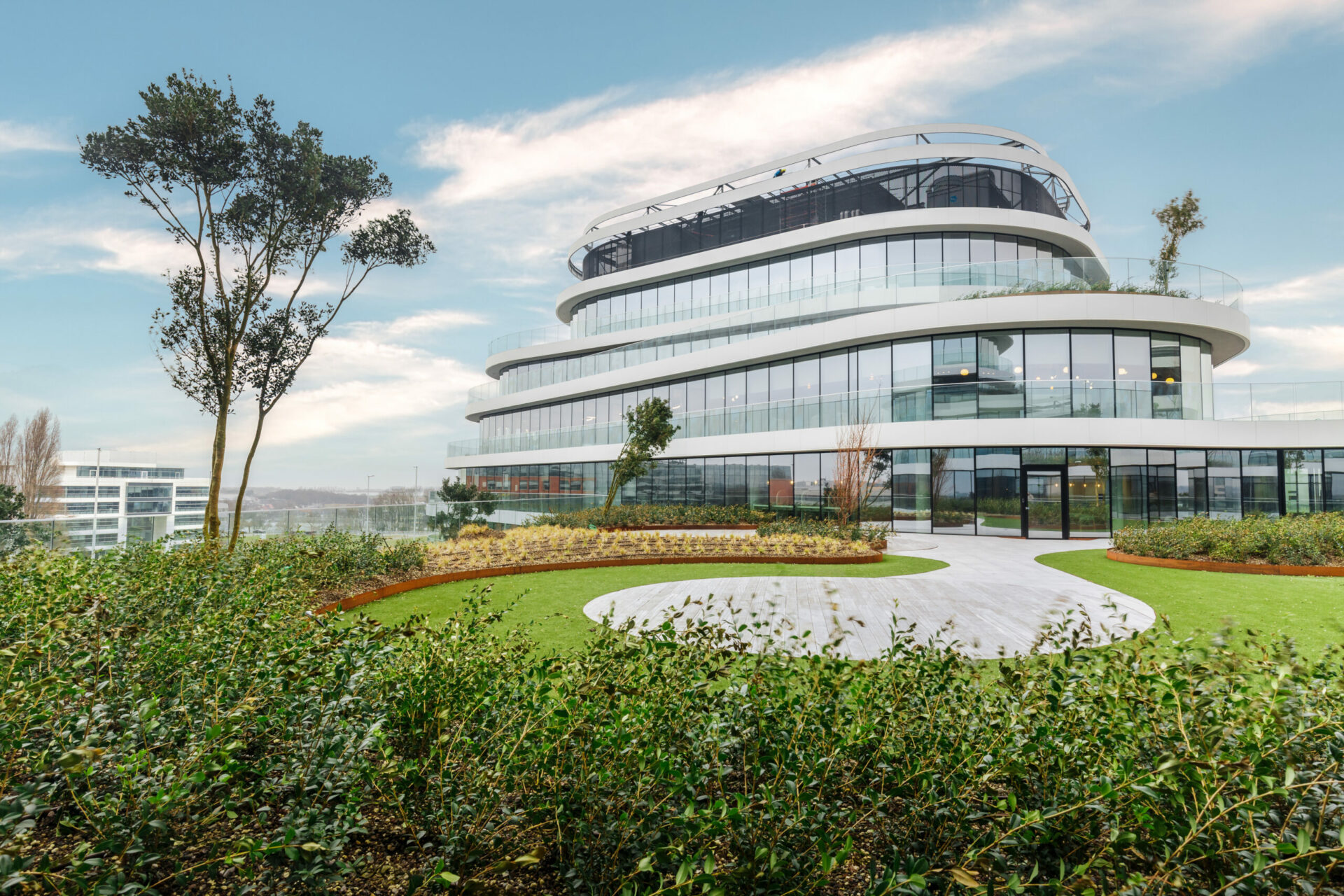 For the landscaping, we closely collaborated with “flower artist” Daniel Ost, who adeptly responded to the building’s undulating forms. The abundance of greenery on the site fully embodies the architectural objective of creating a perfect balance between work and well-being.