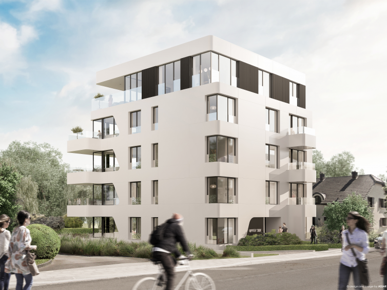 Located in Luxembourg in the residential district of Weimershof, southeast of Kirchberg, just steps from the international banking and financial hub and the headquarters of European institutions, Upperside is a 1,000 sqm residential development initiated by the developer Eaglestone. This three-facade building comprises 9 high-end apartments spread over 4 floors.