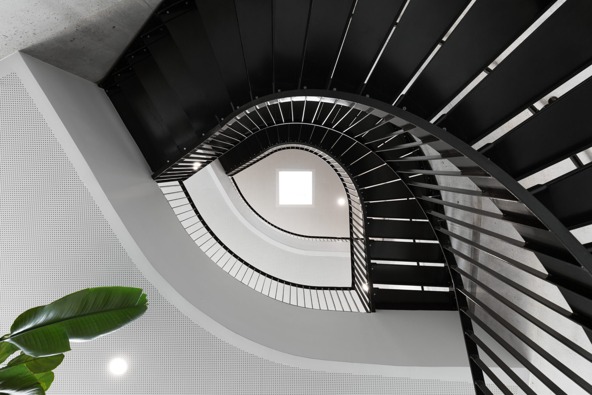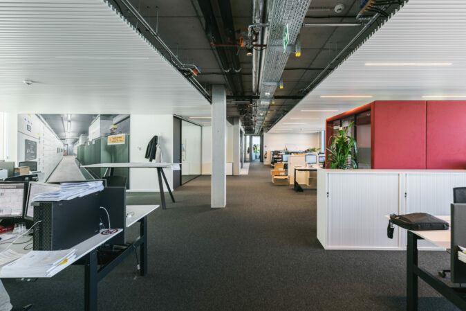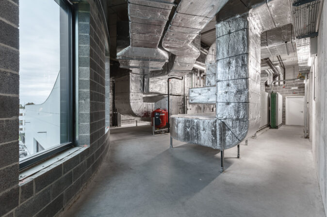 The entrance atrium thus serves the different parts of the building, but also its functional heart, the technical premises. These are located on the top floor, in the direct extension of the offices of the Cegelec company that equipped them.