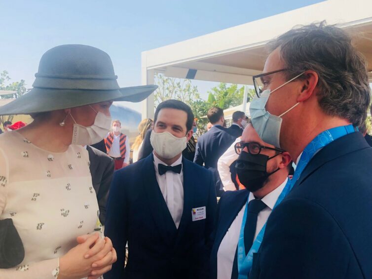 During the belgian day at the world expo in Dubai, King Philippe and Queen Mathilde visited the belgian pavilion “the Green Arch” and congratulated the architects!
